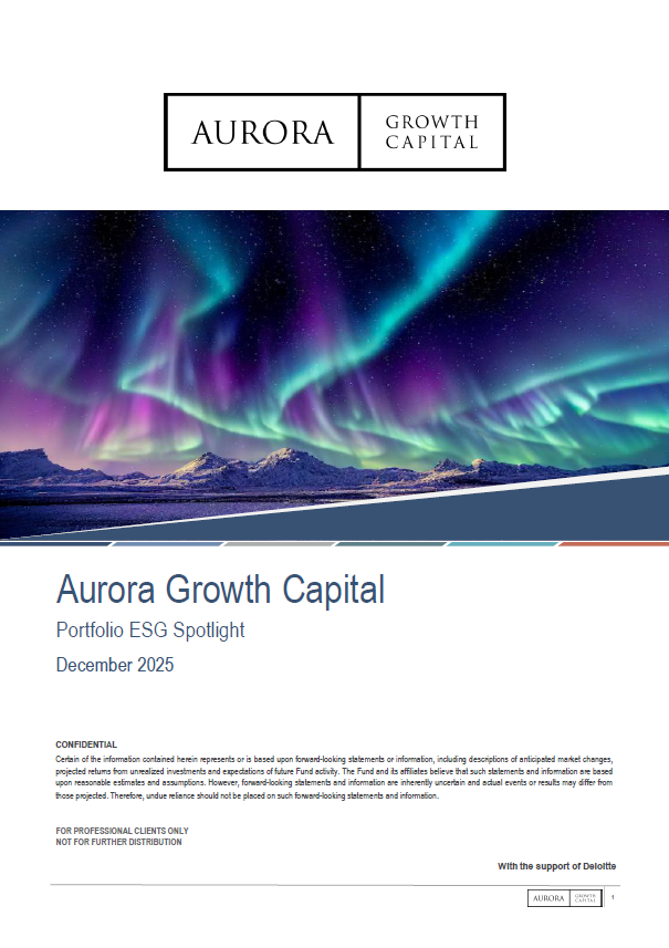 Aurora believes that integrating ESG considerations throughout the investment process can potentially lead to long-term value creation for its investors, portfolio companies and all stakeholders. ESG factors may support responsible investing not only within the investing industry, but also across its portfolio companies and the business community at large. The Aurora Team consistently encourages continuous improvement in ESG performance across all its funds, firmly believing that ESG is a long-term value maker.
