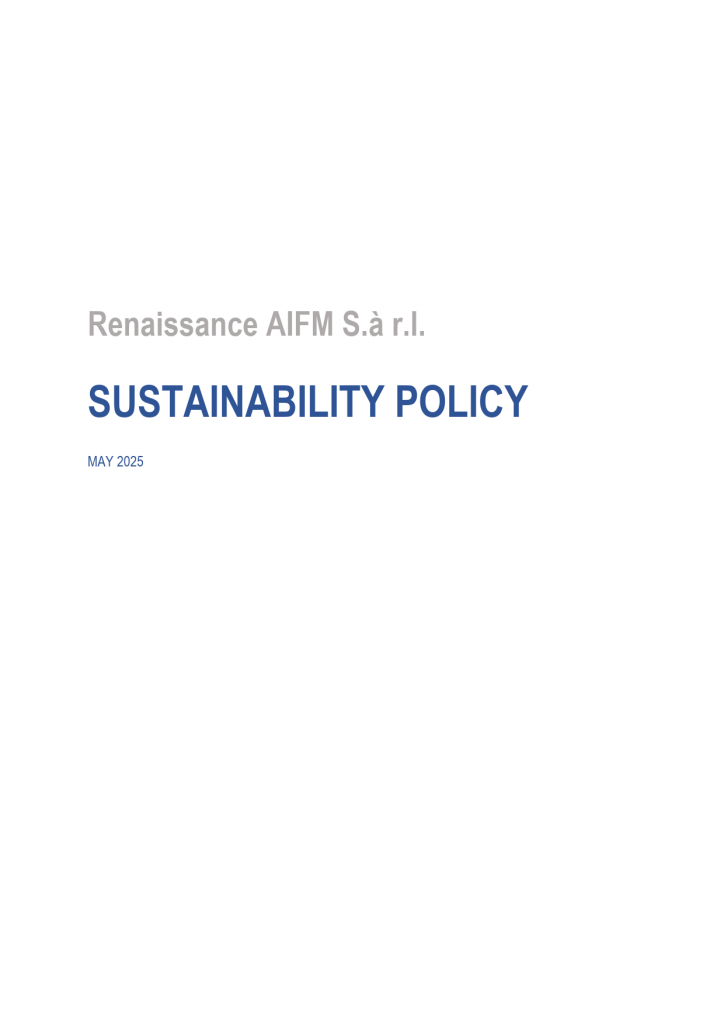 Renaissance AIFM S.à r.l. is an alternative investment fund manager based in Luxembourg and regulated by the Commission de Surveillance du Secteur Financier (CSSF). In accordance with SFDR, Renaissance AIFM S.à r.l. provides the entity-level disclosures pursuant to Articles 3(1), 4(1)(b), and 5(1) of the Regulation. Please refer to the link below.
